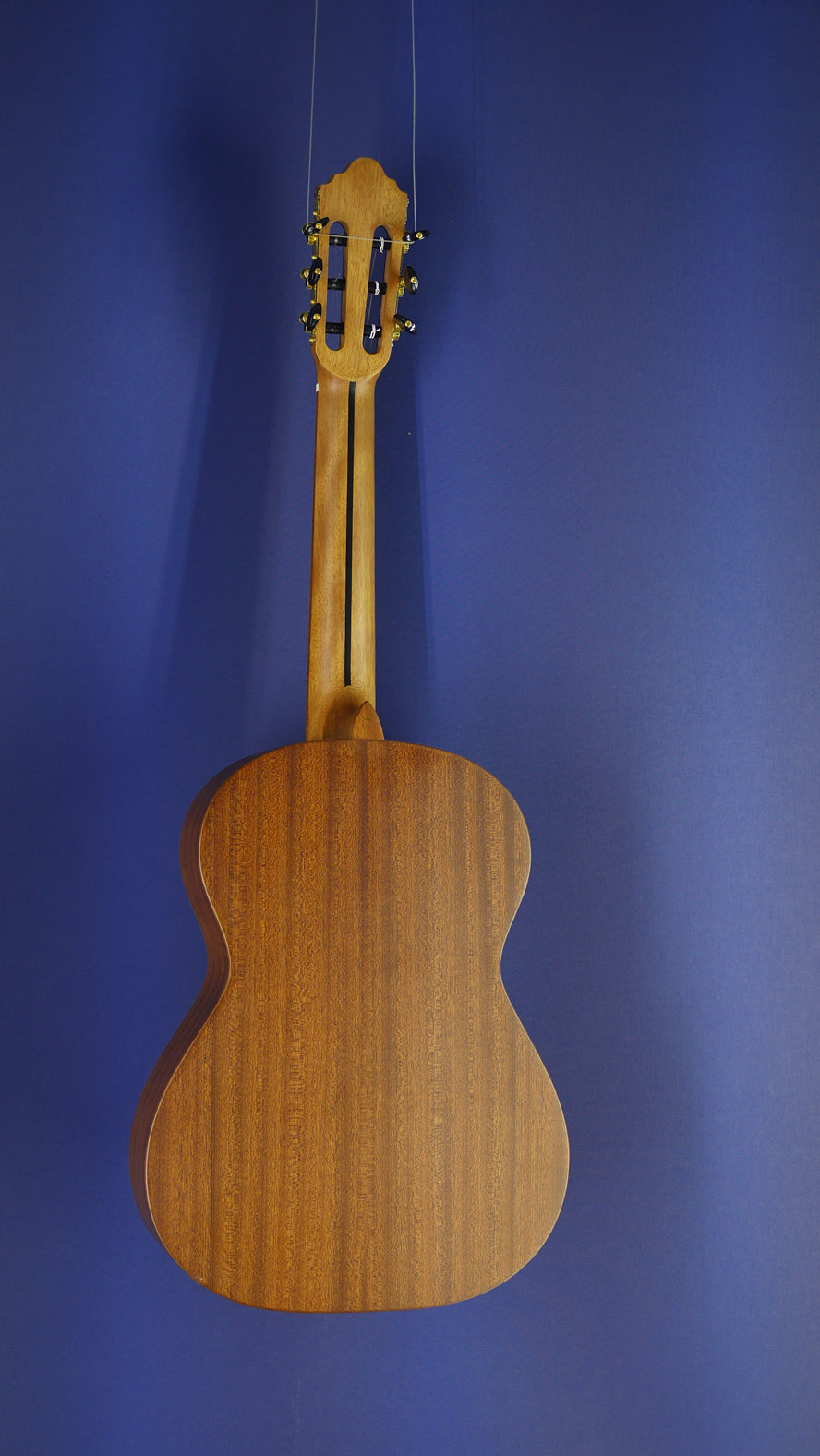 Juan Aguilera, Modell niña 61, 7/8-Konzertgitarre mit massiver Fichten- oder Zederdecke, Mahagoni, Mensur 61 cm, Rückansicht