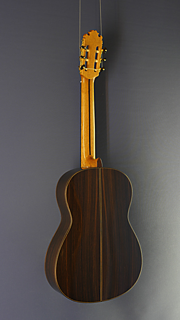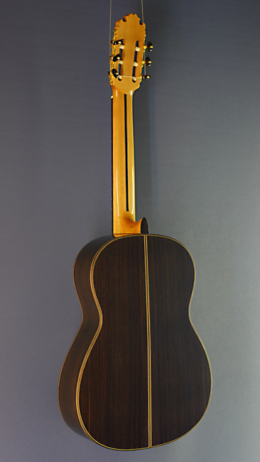 Vicente Sanchis, Model 42, classical guitar with solid spruce or cedar top and solid rosewood back and sides, back view