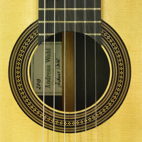 Classical guitar built by luthier Andreas Wahl in 2013 with spruce top and rosewood back and sides