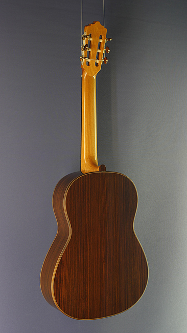 Stefanos Poligenis luthier guitar with cedar top (latice bracing) and rosewood back and sides, year 2019, back view