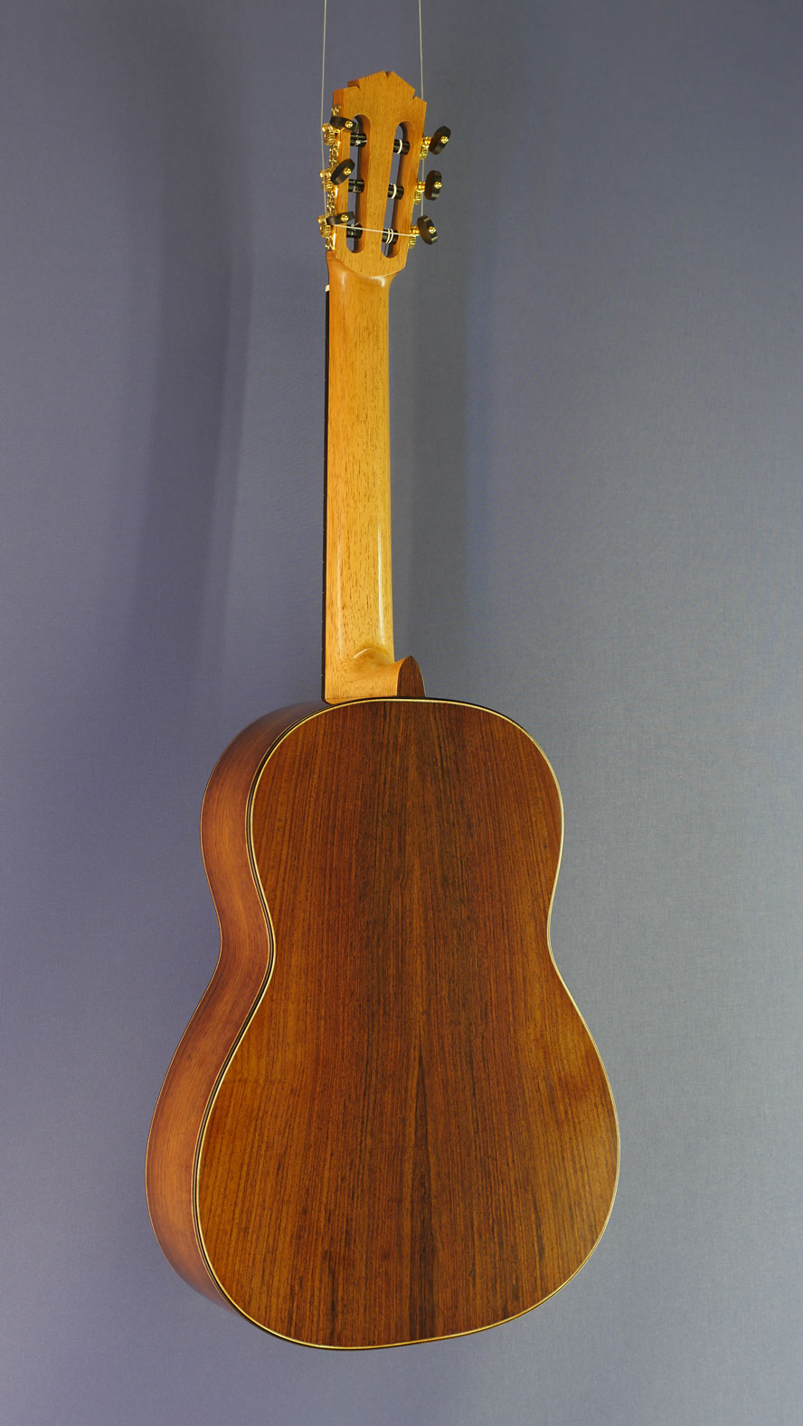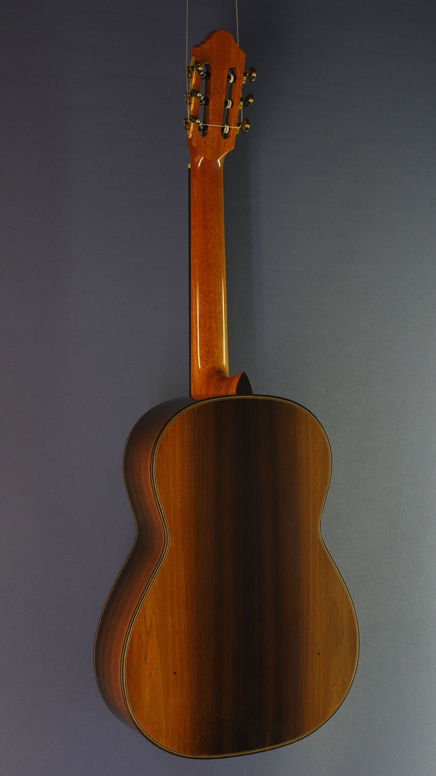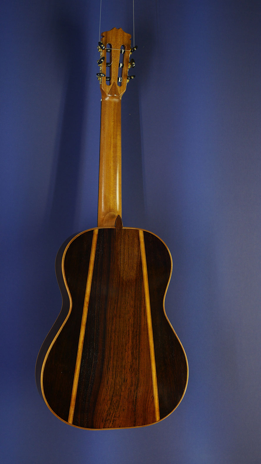 Bernd Martin Model 40th Aniversary, Nr. 2, special limited edition of 8 guitars with finest selected components and woods, with spruce top and rosewood back and sides, Scheller tuners and Titanium frets, year 2016, back view