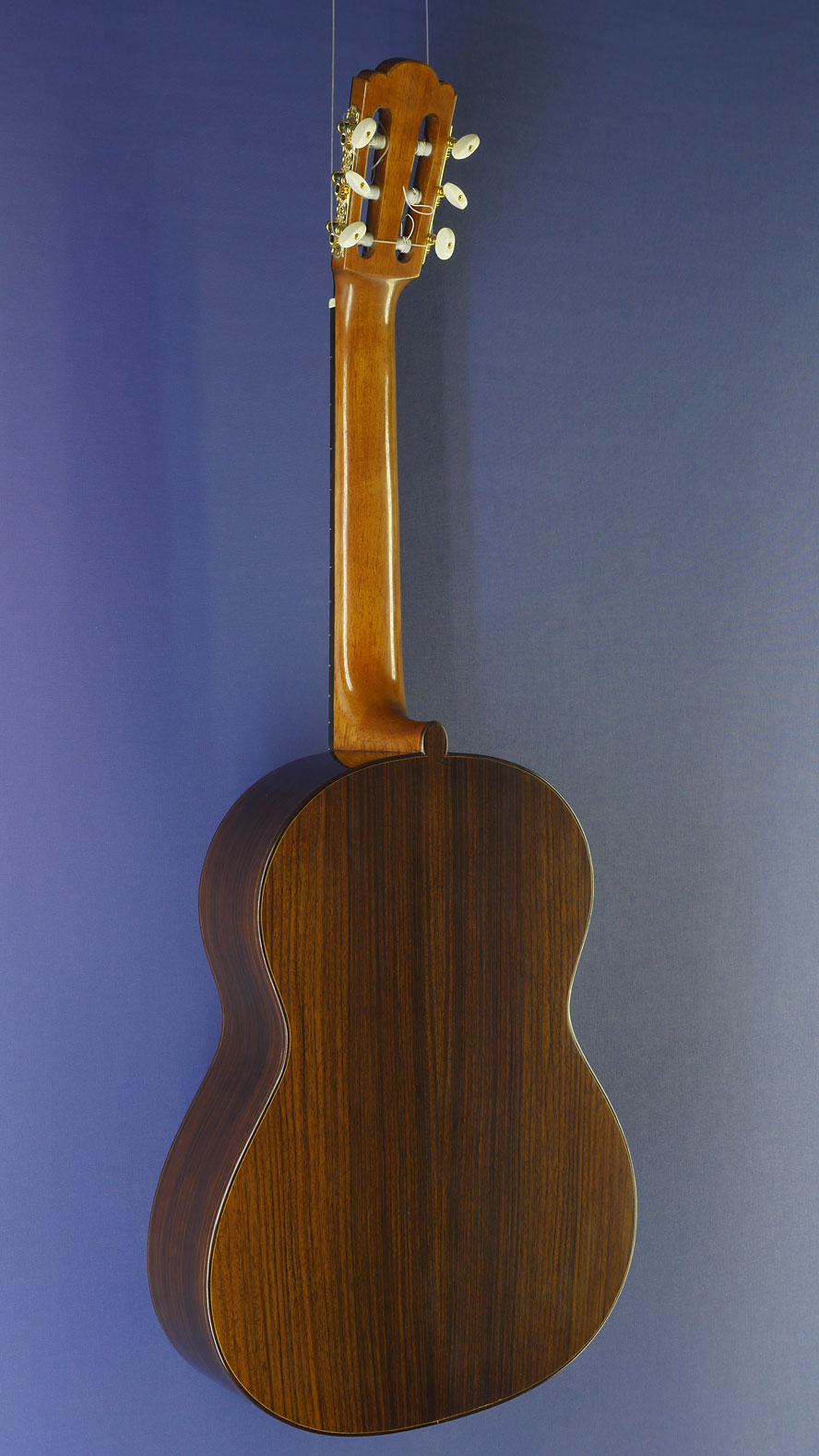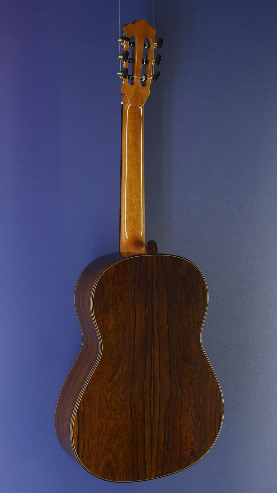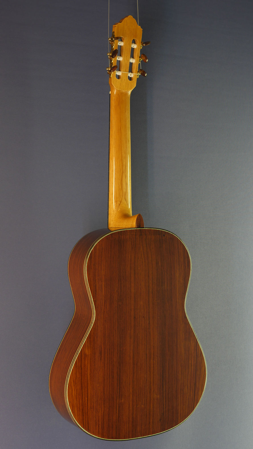 Bernd Martin Model 40th Aniversary, Nr. 2, special limited edition of 8 guitars with finest selected components and woods, with spruce top and rosewood back and sides, Scheller tuners and Titanium frets, year 2016, back view
