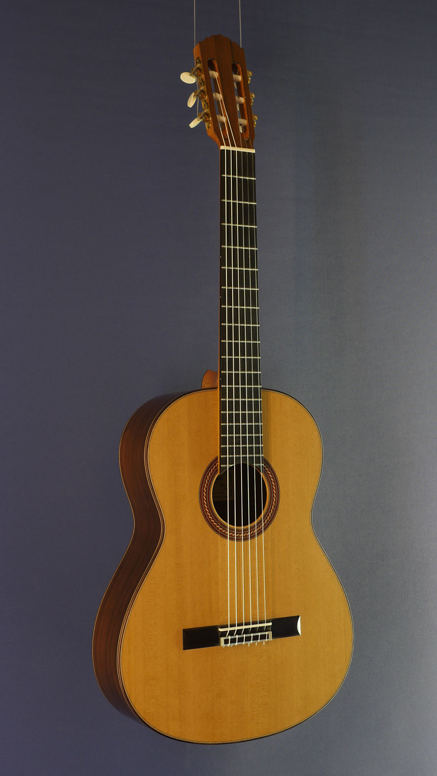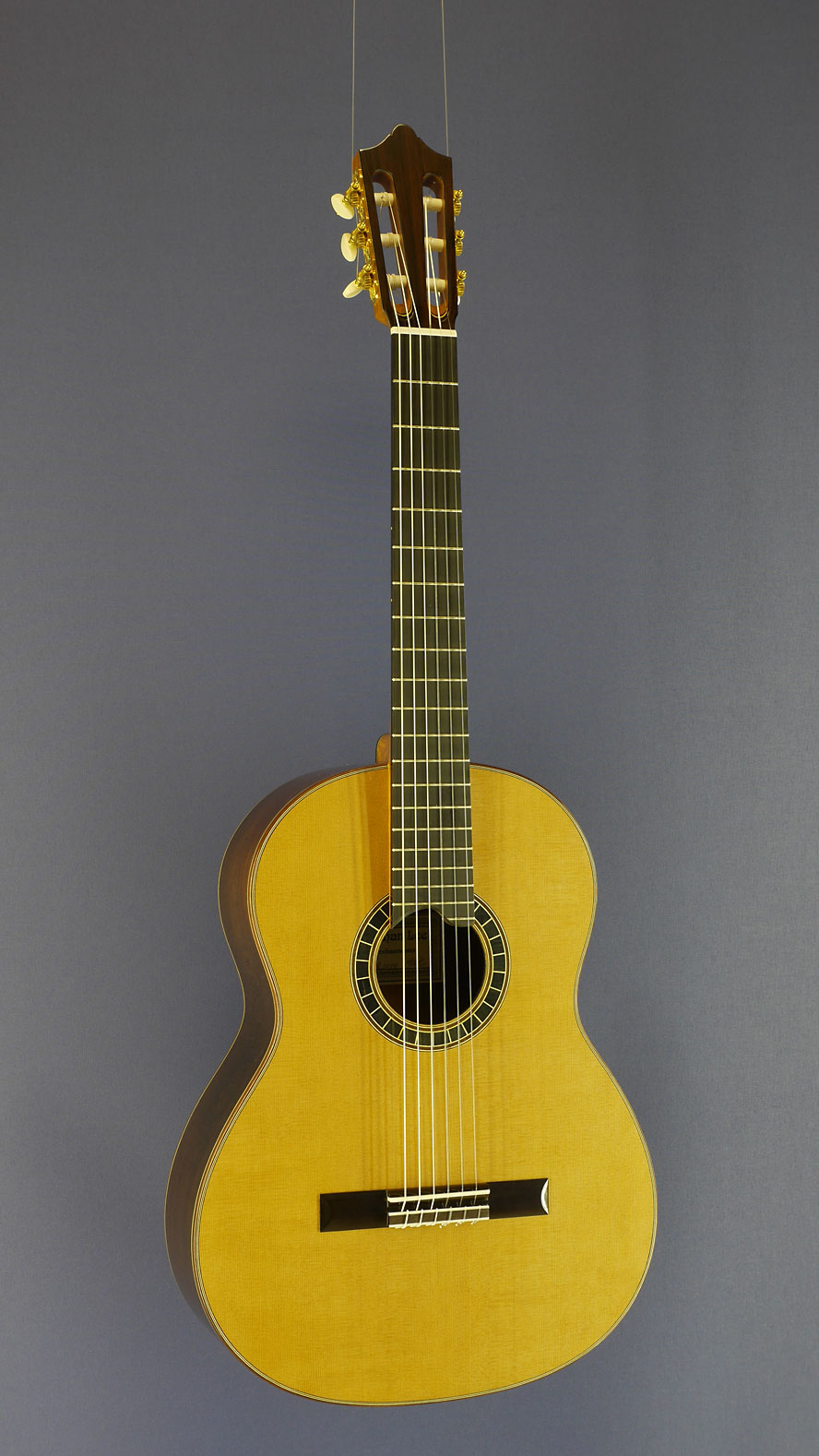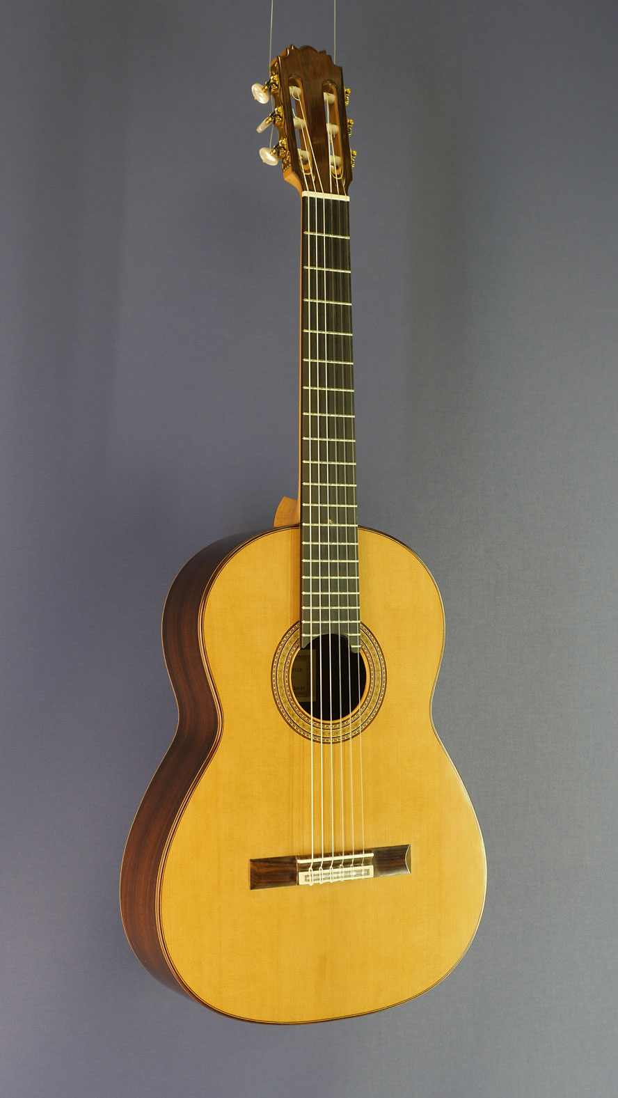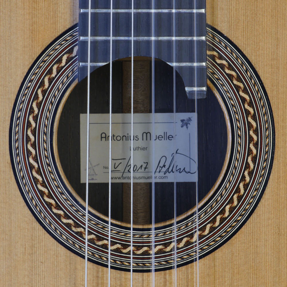 Classical guitar built in 2017 by Antonius Muller with cedar top (Doubletop) and back and sides made of Brazilian rosewood, rosette, label