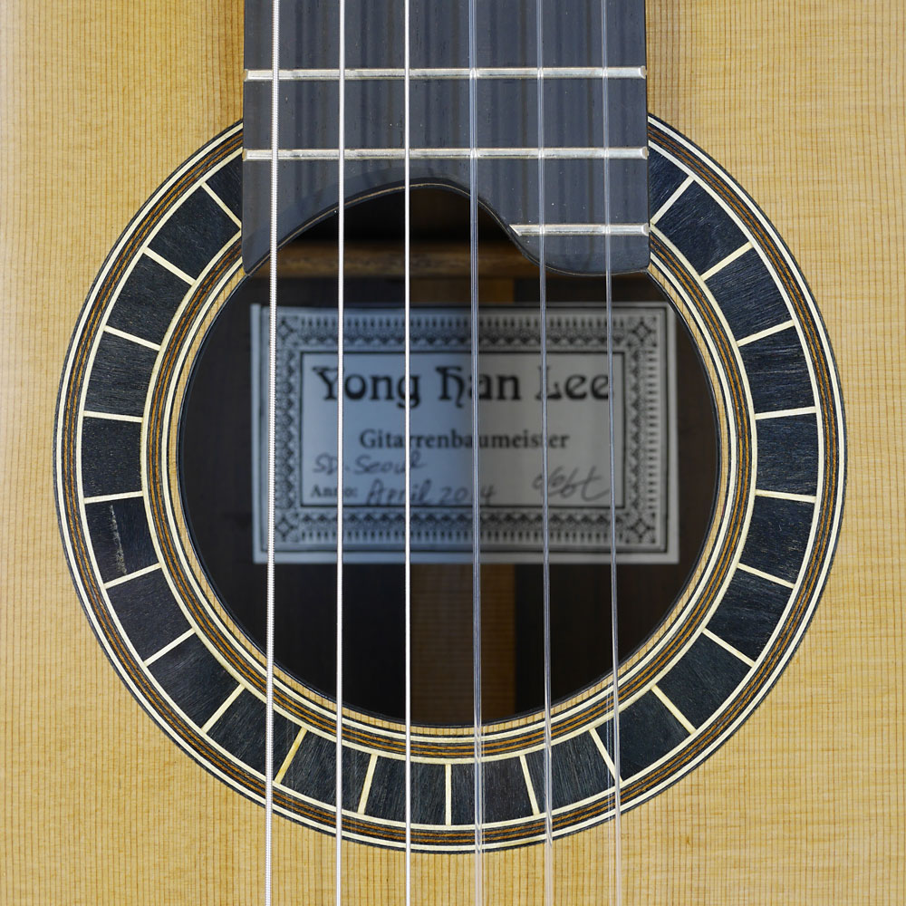 Doubletop guitar built by luthier Yonghan Lee in 2014 with cedar top and rosewood back and sides, rosette, label