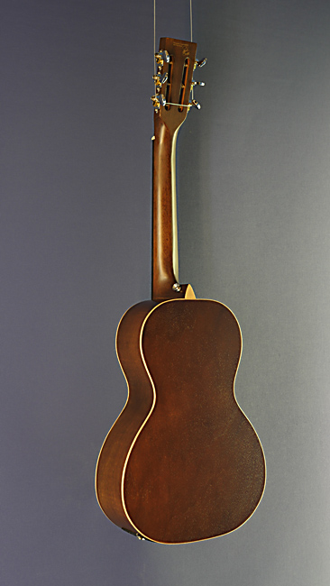 Vintage Paul Brett Signature Acoustic Third Guitar with solid Sitka spruce top and mahogany on back and sides, antique finish, scale 54.6 cm, with Fishman Sonitone USB pickup, back view