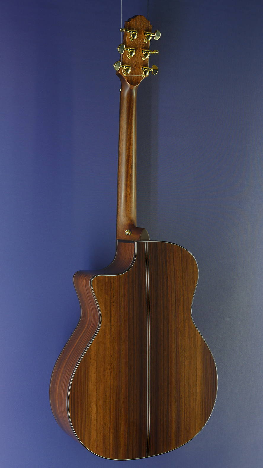 Acoustic guitar, Model PT69, built by guitar maker Christian Stoll with solid cedar top, and solid rodewood back and sides, satin finished, with cutaway and 45 mm wide neck, back view