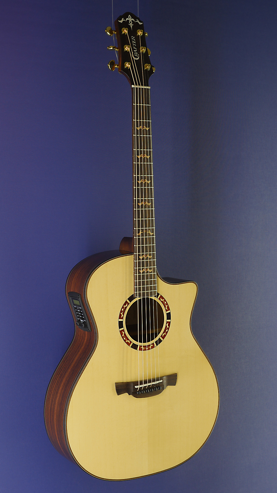 Acoustic guitar, Model PT69, built by guitar maker Christian Stoll with solid cedar top, and solid rodewood back and sides, satin finished, with cutaway and 45 mm wide neck