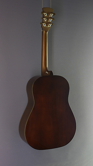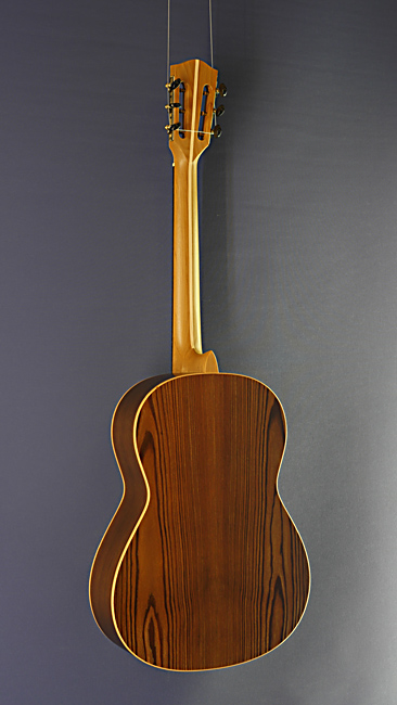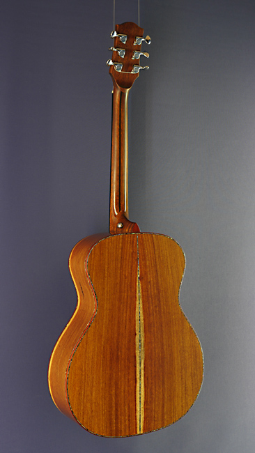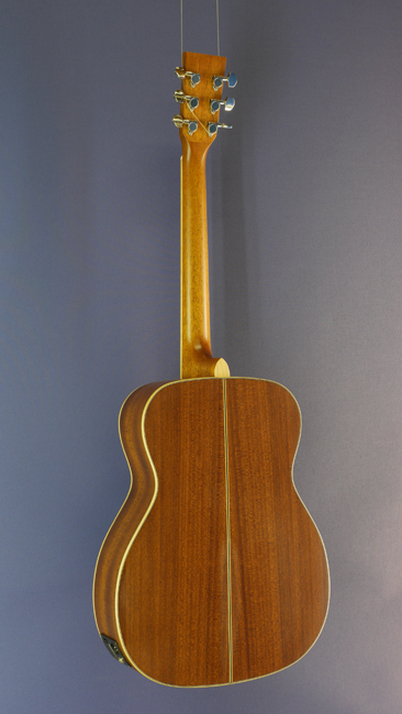 Satin finished acoustic guitar, model PT 59, built by German guitar maker Christian Stoll with solid spruce top and solid mahogany back and sides, back view