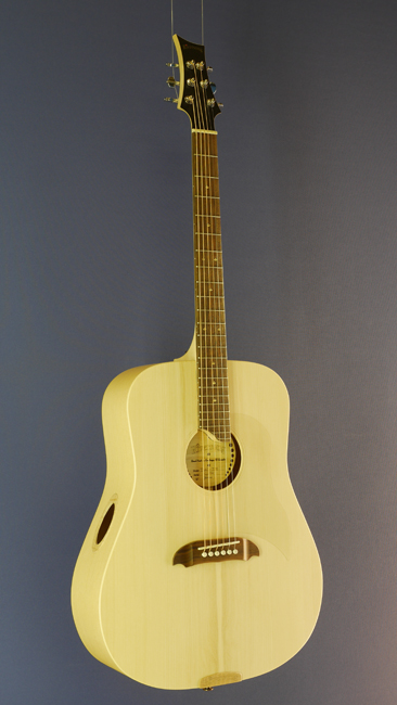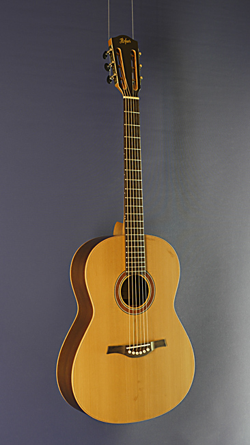 Satin finished acoustic guitar, model PT 59, built by German guitar maker Christian Stoll with solid spruce top and solid mahogany back and sides