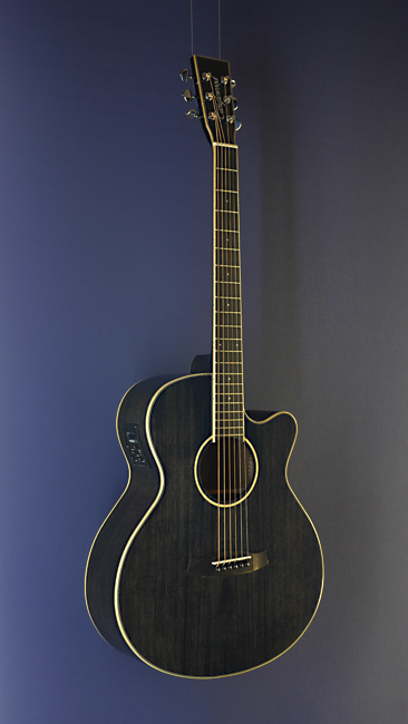 Tanglewood Black Shadow Winterleaf, black finished acoustic guitar with pickup in Folk shape with solid spruce top and mahogany on back and sides, with cutaway