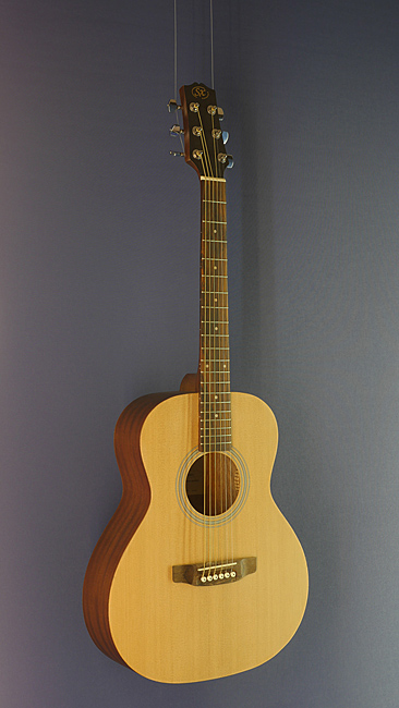 Top: solid Sitka spruce Back/ sides: mahogany small Parlour-Form antique satin finish, scale 54.6 cm with Fishman Sonitone USB Pickup and Gigbag